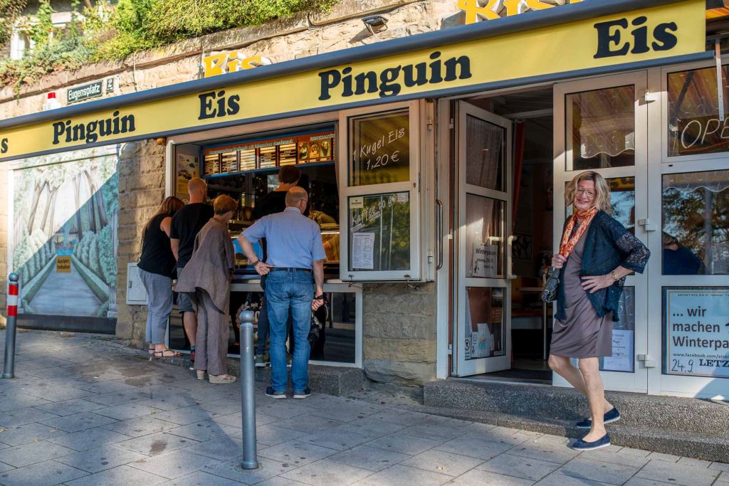 (... oder da es kein Stuttgarter Mädle war?) und beschwerten sich. Königin Olga drohte daraufhin, die Figur umdrehen zu lassen, damit sie mit ihrem Hinterteil auf die Stadt hinabblicke. Die Beschwerden stoppten sofort! Besonders im Sommer ist der Eugensplatz beliebter Treffpunkt: Wegen der einmaligen Aussicht - und dem leckeren Eis (Tipp!!) der traditionsreichen Eisdiele "Pinguin"! |