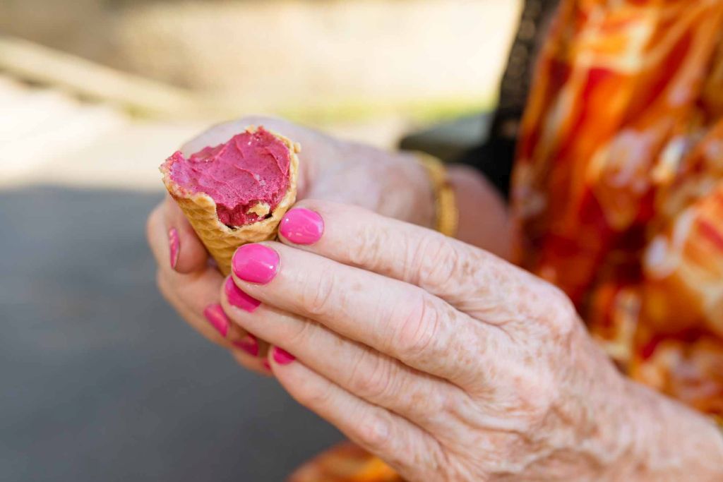 ![]() Das Eis der Eisdiele Pinguin schmeckt vorzüglich. Karin stellte dann fest, dass ich mein Eis passend zu der Farbe meiner Fingernägel gewählt hatte, war aber unbewußt geschehen (striplac 928 MY Laury) . |