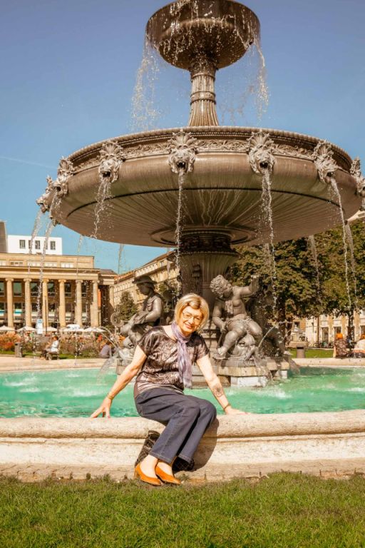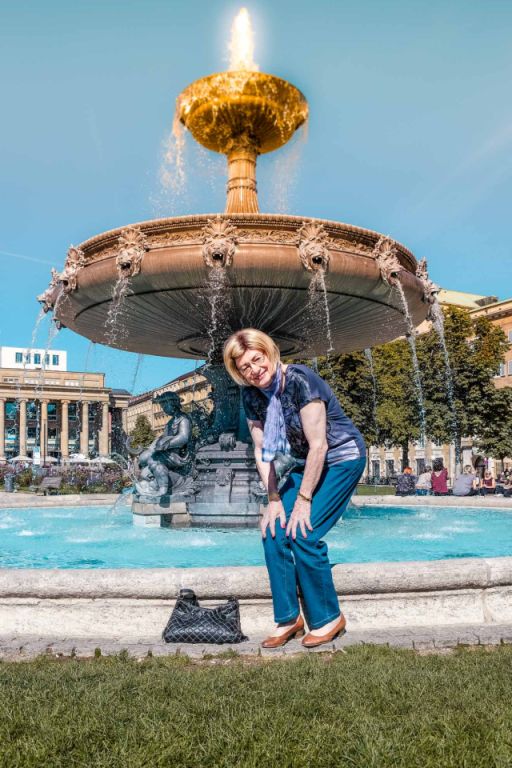 ![]() Auf dem Schlossplatz sind zwei gleiche Brunnen, wie das Luftbild von https://mrsminirobot.files.wordpress.com zeigt. Auch bei Wikipedia findet man die Geschichte und Bilder der Brunnen vom Schlossplatz. Der Brunnen ist ein beliebtes Fotomotiv. Auch von Marlene Bitzer wurden von Karin Schiel einige Aufnahmen für ihr Buch "Girls Game" gemacht. Karin verwendete auch Farbfilter, der Brunnen ist nun goldfarben. Mir war aber das Wasser zu kalt ;) . |