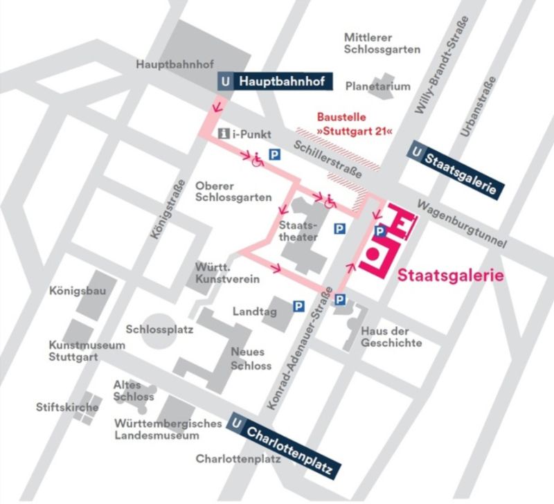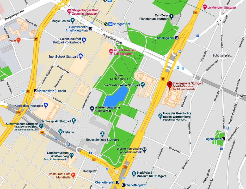 ![]() Die Staatsgalerie befindet sich in der Nähe des Schlossplatzes in der Konrad-Adenauerstr. 30-32, 70173 Stuttgart. |