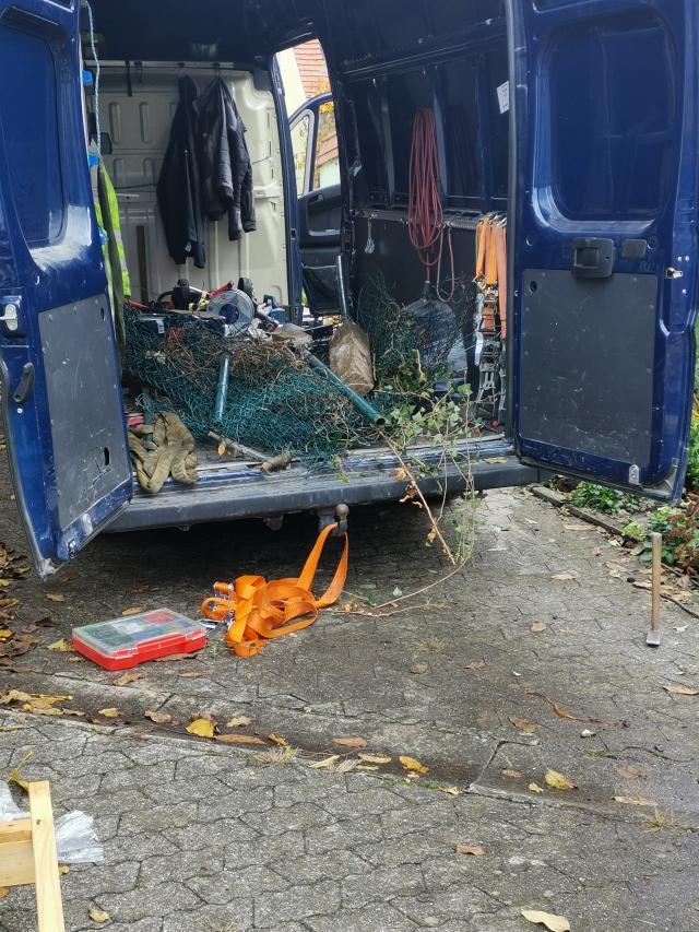 Wie jedes Jahr immense Mengen Laub vom Nussbaum, obwohl er ja voriges Jahr zurück geschnitten wurde. |