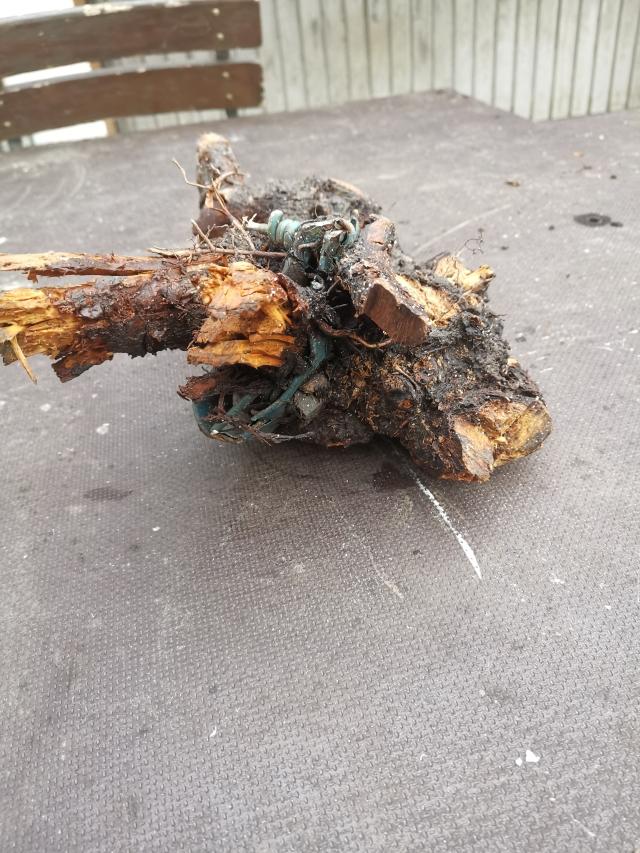 Der alte Drahtzaun war schnell entfernt. Jessy musste ich an der Leine in den Garten führen. |