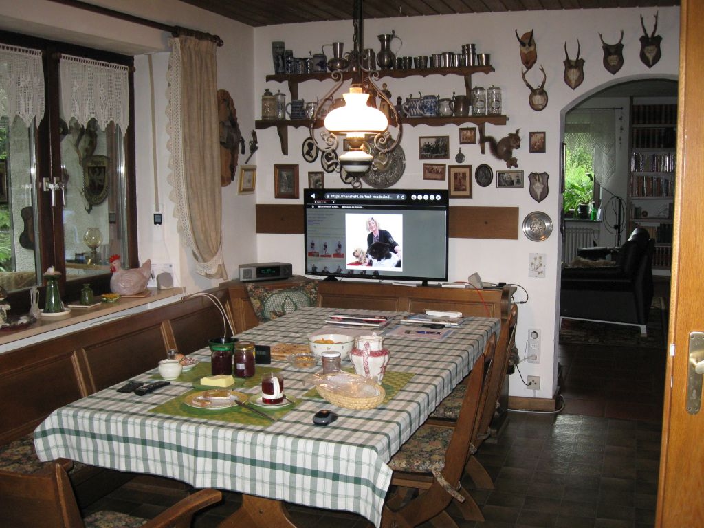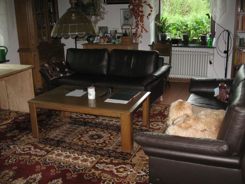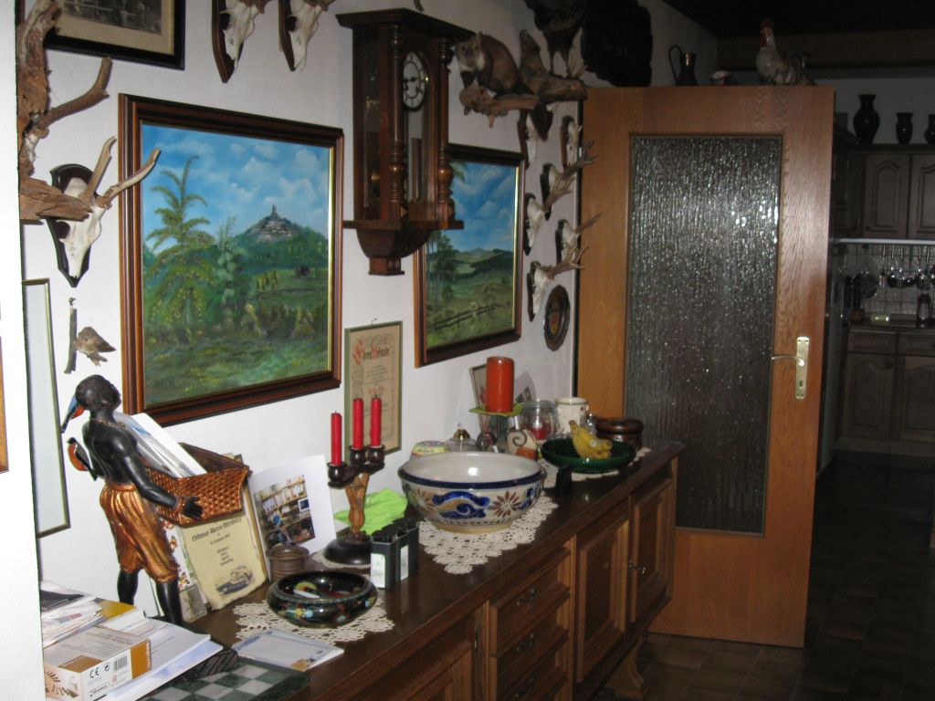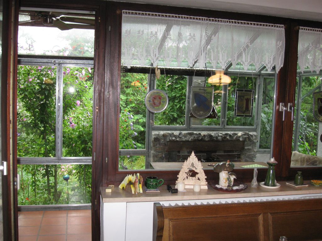 Die Bilder links an der Wand (1. Bild) malte meine Bärbel in Bob-Ross-Technik. Die Terrassentür führt von der Küche in den Wintergarten. |