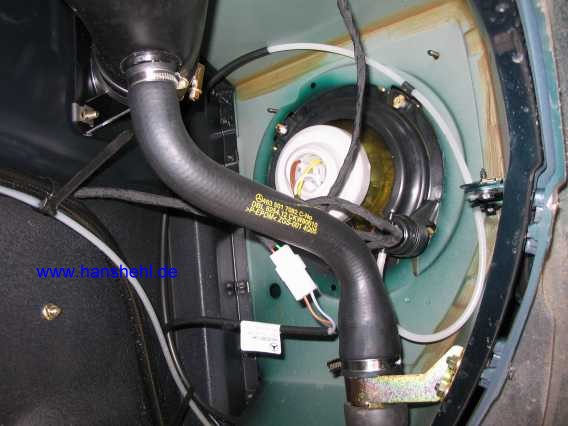 Versteckt unter einem Deckel im Kofferraumboden hat man Zugang zum Tankgeber. In einigen Jahren sammelt sich da viel Dreck und Rost an. Sparsamst ab Werk sind nur die Anschlüsse konserviert.