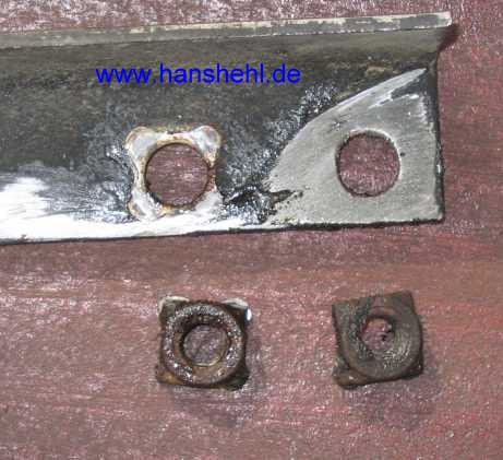 Der eigentliche Halter (rechts: A4634903640, links: A4634903740), ein Winkeleisen, ist schon aus V2A. Die M8-Anschweißmuttern sind aber nicht aus V2A und nach 4 Monaten schon angerostet. |