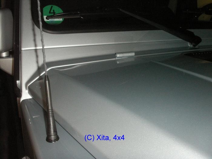 Beim Cabrio ist die Kombiantenne für Telefon/Radio auf dem rechten Kotflügel angebracht (Bild von Xita, 4x4-Forum). Cabrio-Antenne