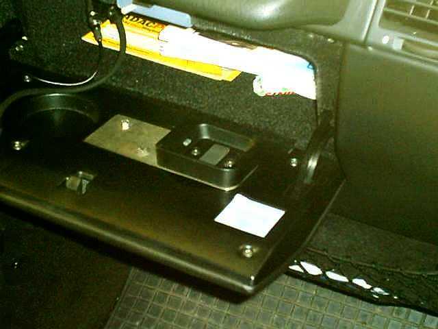 mittels einer kleinen selbstgebauten Blechplatte befestigt. Benötigt wurde die Peiker-Handy-Aufnahme
