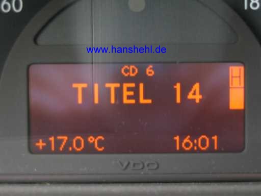 | Damit kann der CD-Wechsler über die Lenkradtasten gesteuert und im Tacho-Display angezeigt werden. |