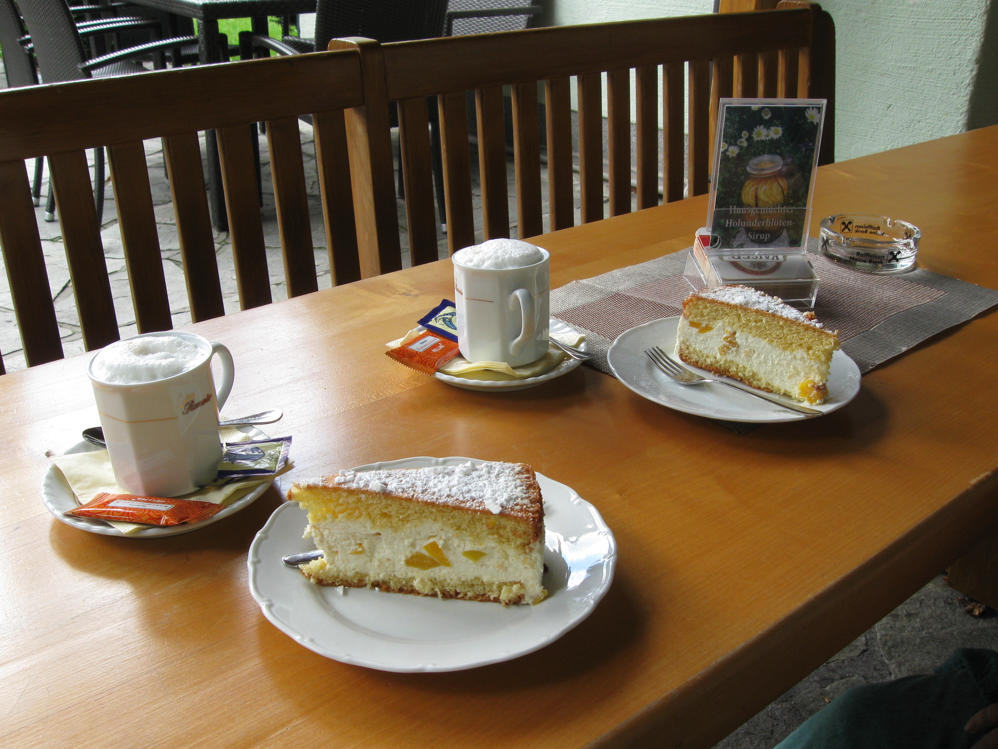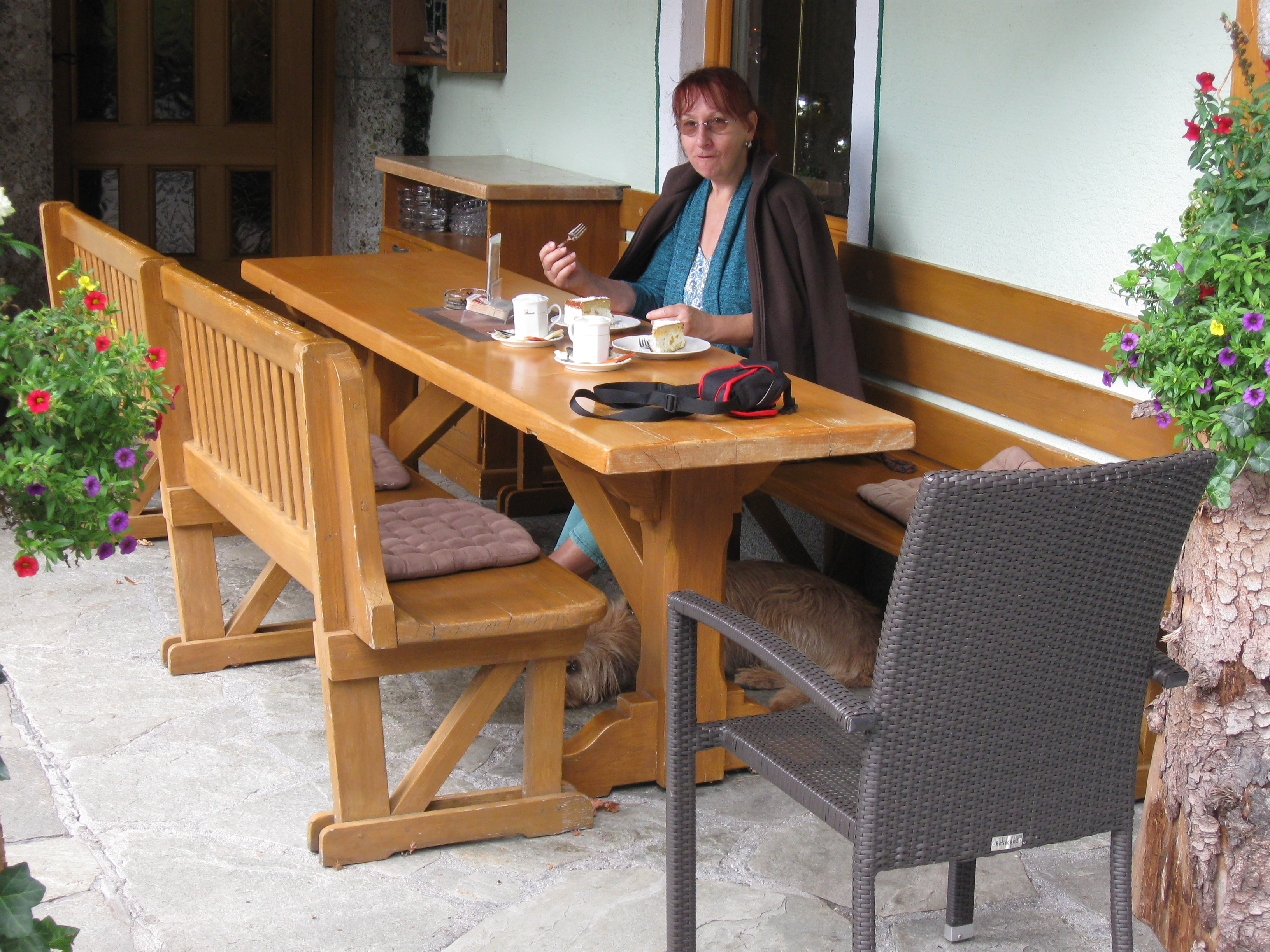 Am 10. September 2015 waren wir mit Harald und Ingrid in der Gaissau zum Wandern und mittags auf der Spielbergalm bei schönem Sonnenwetter. Nachmittags fuhren Harald und Ingrid eher heim. Bärbel und ich konnten beim Krisplwirt trotz geschlossener Veranstaltung Kaffe und Kuchen bekommen. Dann holten wir von der Schirlastubm unsere zwei Stammkrügel (mit Namen), die dort über 20 Jahre standen. |