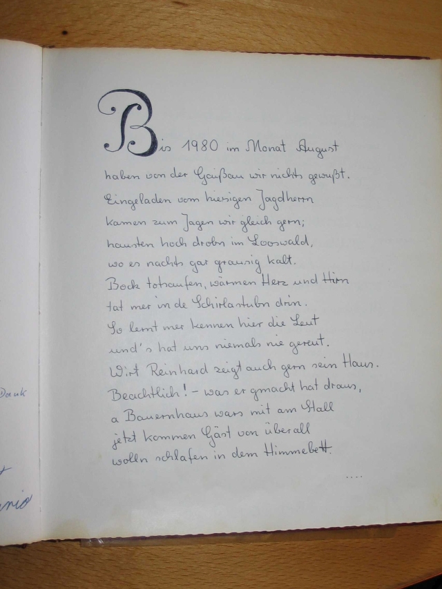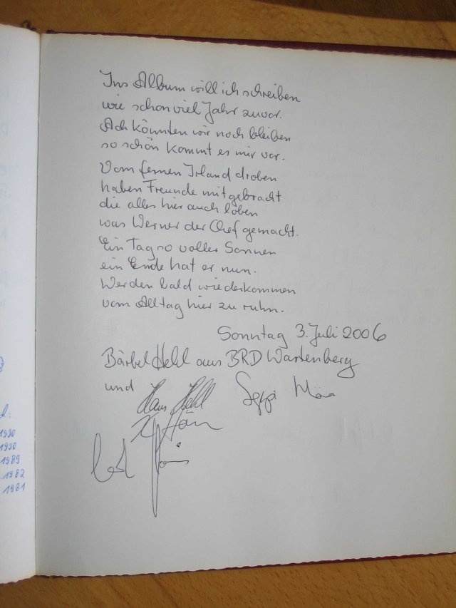 Seit 1980, wo wir zum Jagern in der Gaissau waren, kamen wir in die Schirla-Stubm und so gab es auch viele Gästebucheinträge. |