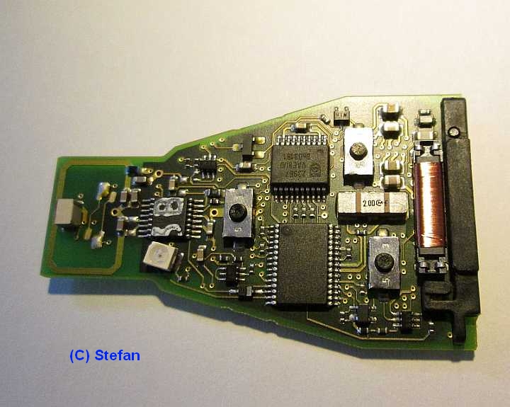 Zum Reinigen kann ich das Spray Kontakt 60 empfehlen. Danach muss mit dem Mittel Kontakt WL gut nachgereinigt werden, damit alle Rückstände herausgewaschen werden und die Elektronik richtig trocknen kann. WICHTIGER HINWEIS!!!! Bitte nicht so 0-8-15-Sprays wie WD-40 oder Caramba verwenden! Die machen in Kürze sehr viel kaputt! Zudem NICHT mit den Fingern auf der Platine herumfingern, denn die darauf verbaute Elektronik ist sehr empfindlich und kann durch statische Aufladungen Schaden nehmen! Die Platine wurde mit dem Kontaktreiniger eingesprüht und die Taster dabei mehrere Male betätigt, anschließend mit Druckluft abgeblasen. Vorsicht dabei! Die feinen Drähte der beiden Spulen sind nicht wirklich gesichert und stabil! Dann zusammengebaut und getestet. Der Schlüssel reagierte wieder auf jeden Druck! |