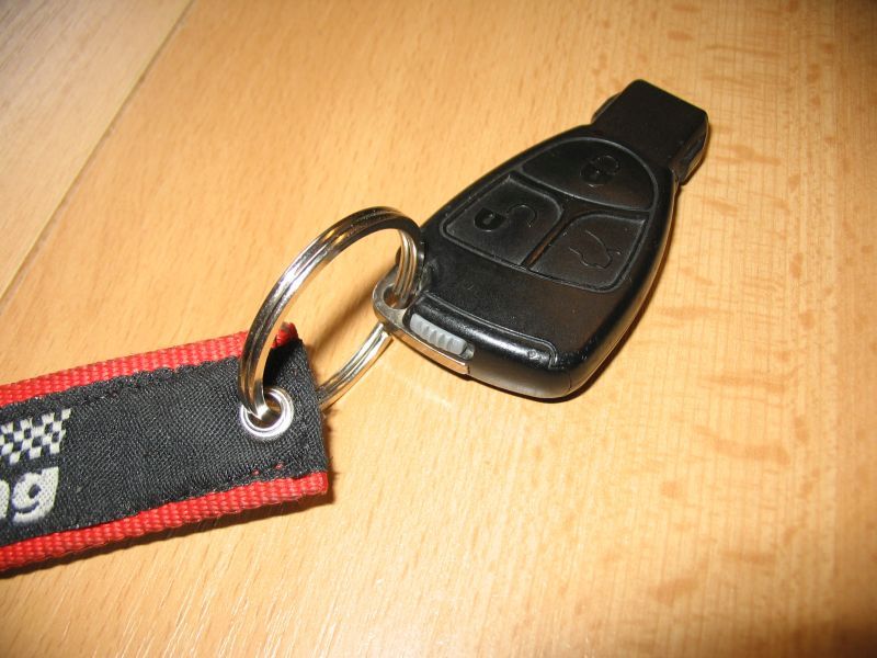 | Der SL55AMG-Schlüssel A2307660106, EPC-Net: Fahrertüren: (72/Schließanlage 030/3) hat eine zusätzliche Taste für die Verriegelung des Kofferraums. Der Zündschlüssel (Senderschlüssel) enthält eine Elektronikplatine von Siemens, die einen FM-Funksender für die FZV (Frequenz 433,92 MHz), eine Infrarot-Sende-, eine Infrarot-Empfangseinheit und einen Rechnerchip enthält. Peilt man beim Drücken der Verriegelungstaste den IR-Sensor im Türgriff an, so findet die Komfortschließung statt. siehe auch Zentralverriegelung FZV |
