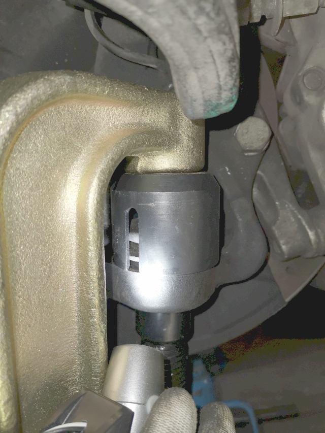 5. Traggelenk aus Achsschenkel abdrücken, anmontieren: