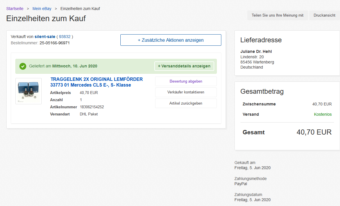 EPC-Bild-Nr. 20: Unteres Gelenk Achsschenkel/Traggelenk an Federlenker A2113300435 (alt A2203330727) - 53,67 Euro ohne MwSt. , Durchmesser der Rändelung 41,3 mm. Ich habe mir im shop von Fahrzeugteile-Helltec ein unteres Traggelenk, 16,80 Euro inkl. MwSt. und Versand, 5 Jahre Garantie, zum Test gekauft. |