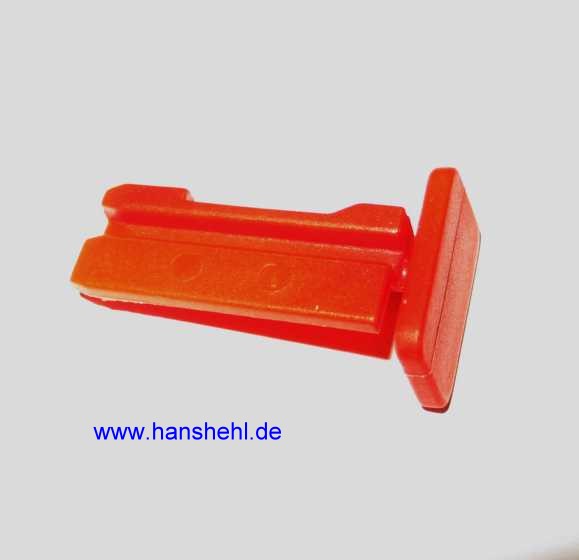 Den aufgefangenen, abgebrochenen unteren Teil des Sicherungsstift habe ich wieder verwendet, er blockiert den Haken in der Verschlusskappe (roter Pfeil). |