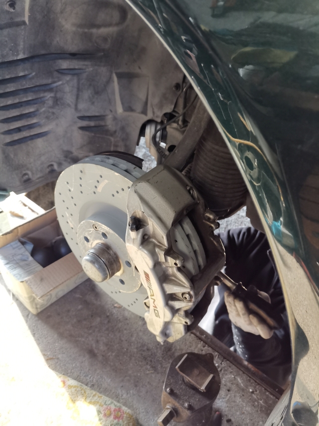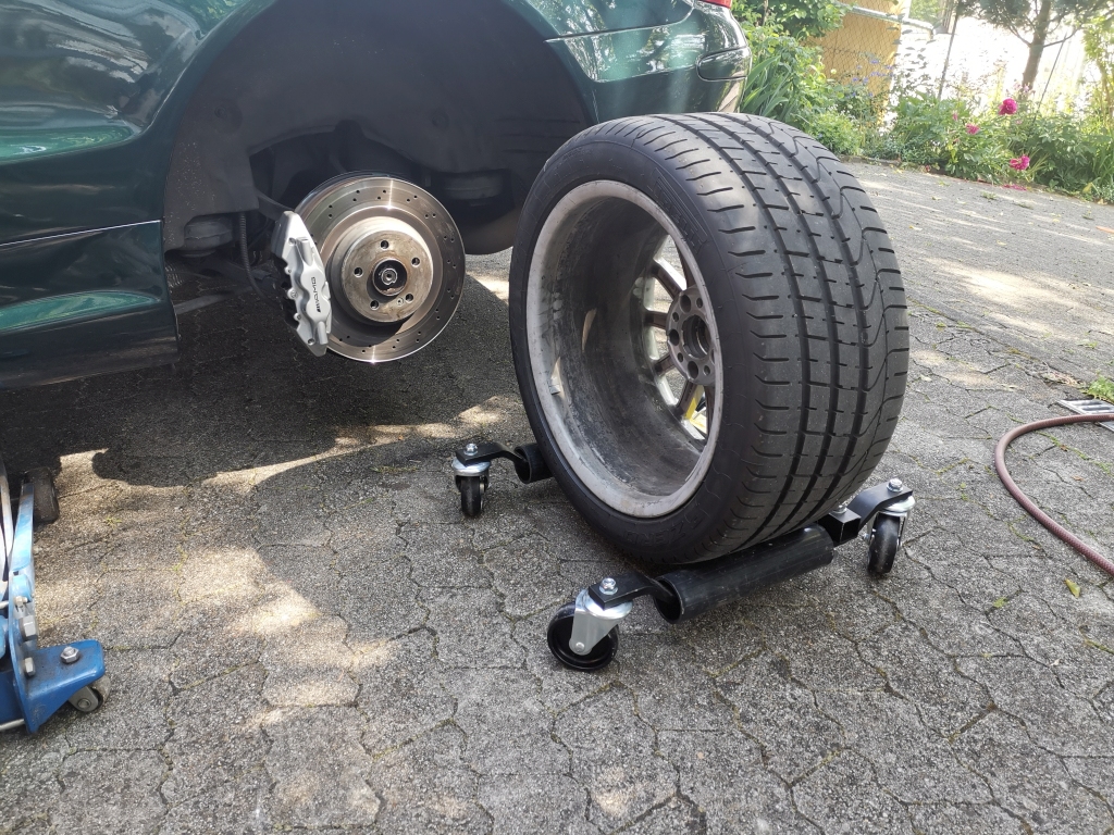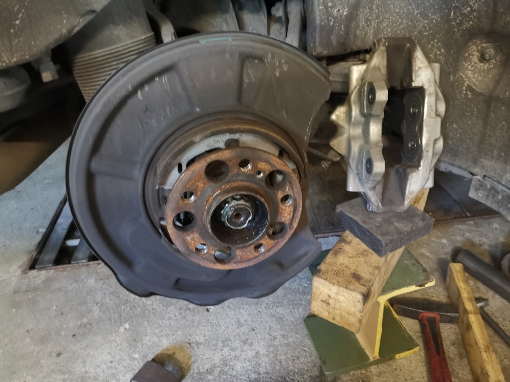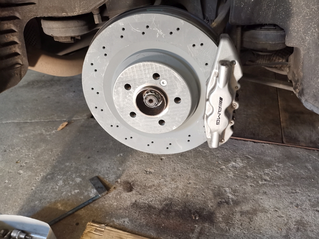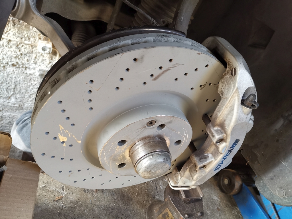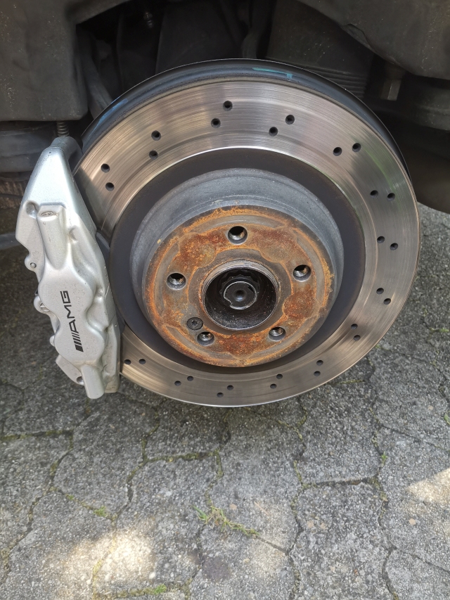 Am 29.06.21 wechselten Jakob und ich als Hilfskraft beim SL55AMG die hinteren Bremsscheiben und Bremsklötze. |