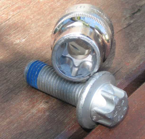Für die Bremssattelschrauben A2114230071, M12 x 1,5 x 35; Festigkeit 10.9 benötigt man einen passenden Torx-Einsatz E18, Drehmoment 180 Nm. |