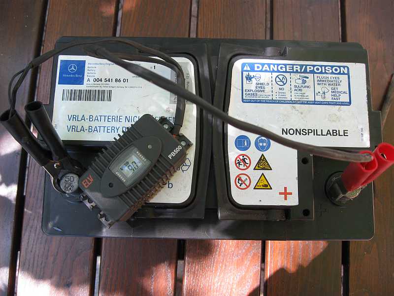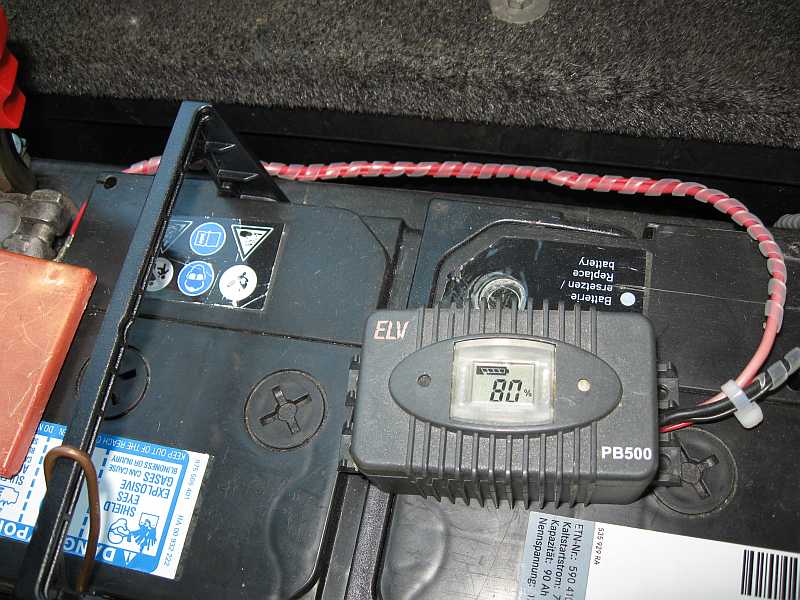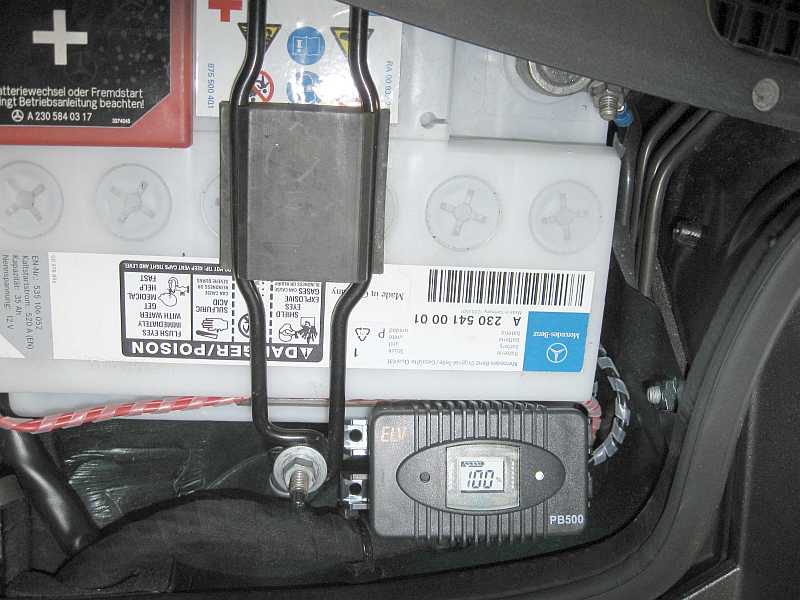 Da ich inzwischen gute Erfahrungen mit dem kleinen Kapazitätsmessgerät Powerbrick PB500 von ELV beim Geländewagen, z.B. 280GE hatte, baute ich zwei dieser Geräte beim SL55AMG ein. |