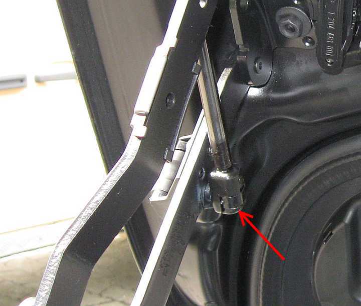 Das manuelle Öffnen des Heckdeckels wird durch zwei Gasdruckfederdämpfer (Feder laut EPC) unterstützt. Der Dämpfer ist unten am Scherengitter und oben am Dach befestigt. Modell LIFT-O-MAT Stabilus www.stabilus.com. |