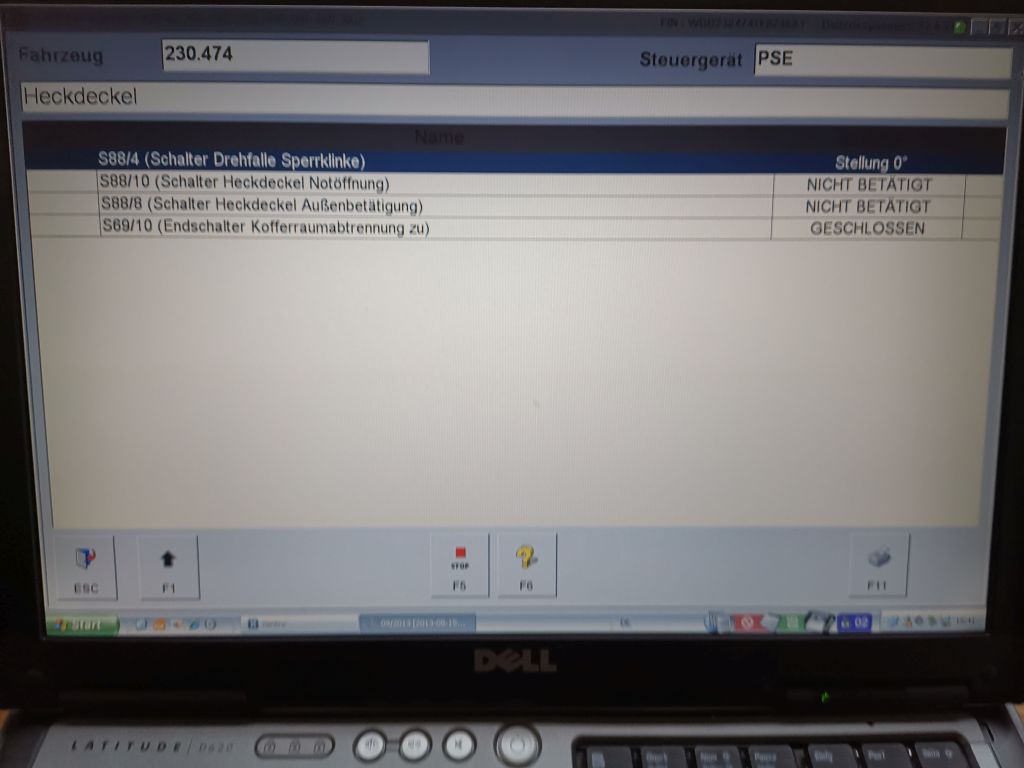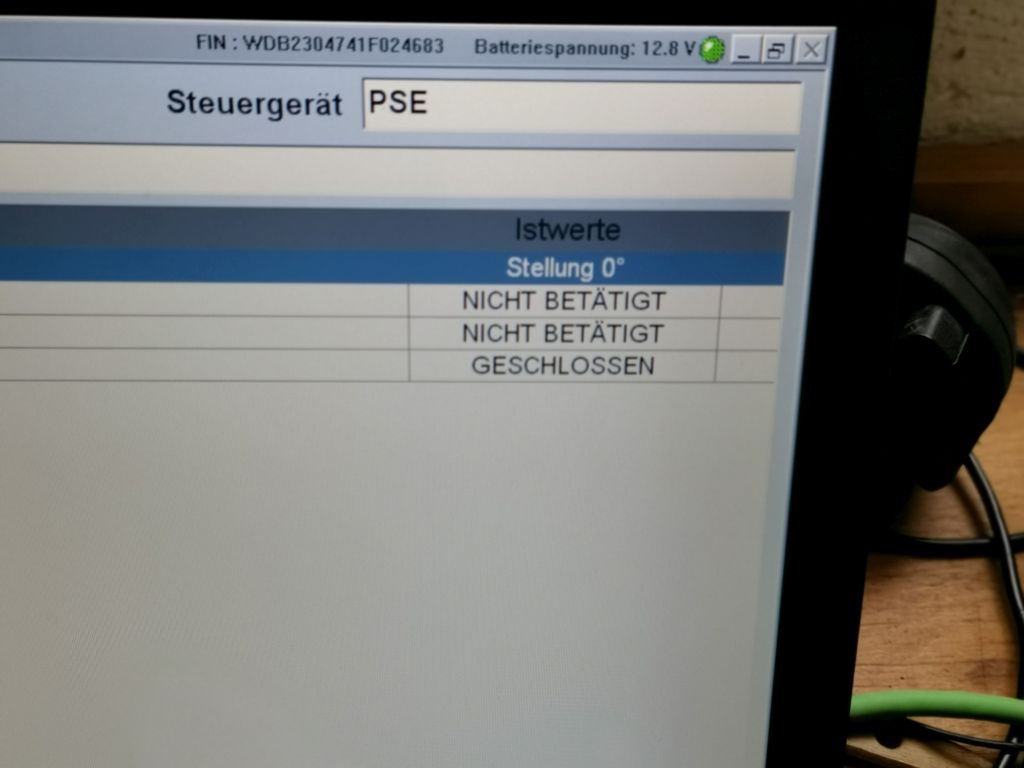 Mit der Diagnose findet man im Menü Aufbau das Menü PSE Pneumatische Steuereinheit den Heckdeckel beim Steuergerät PSE.