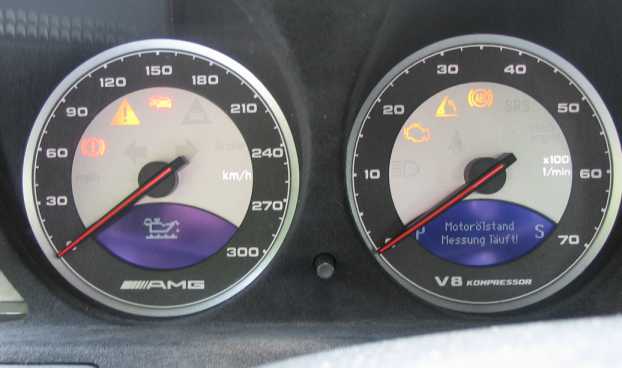 Der SL55AMG besitzt keinen Ölmessstab. Es wird elektronisch gemessen. Das Fahrzeug muß waagrecht stehen und der Motor betriebswarm sein. Frühestens 1 Minute nach "Motor Aus" kann gemessen werden. Eine Beschreibung der Funktionsweise des Sensors und der Messmethode beim M113.99# ist in der Dokumentation Ölsensor B40 enthalten. Ölstand prüfen: AR18.00-P-3035-010O |