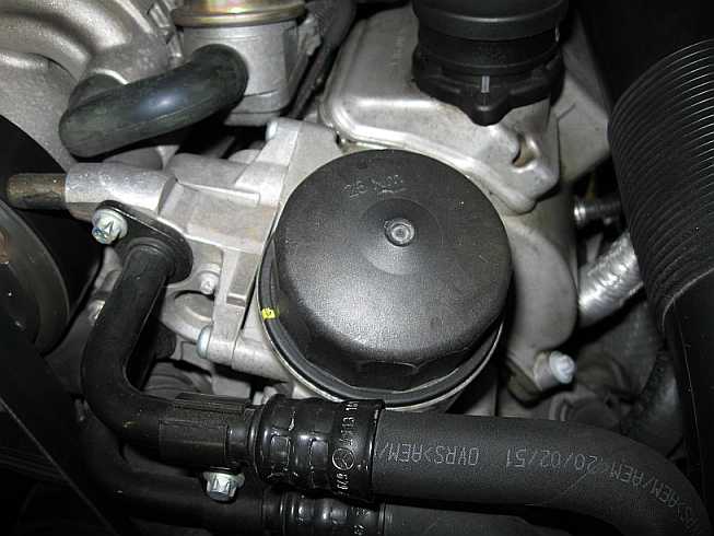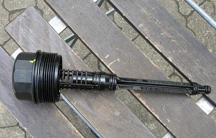 Der Vlies-Ölfilter A0001802609 ist der gleiche wie beim G55AMG und dort beschrieben: tipp36-1.htm#b41 . Der Ölfilterhalter ist nur handfest angezogen (25 Nm). Es gibt von der Fa. Hazet einen Filterschlüssel 2169 zum leichten Abschrauben. Vor dem Einschrauben mit der Hand wird die Gummidichtung leicht eingeölt. |