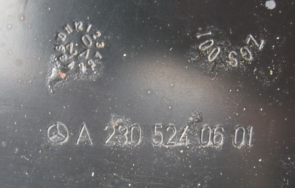 untere Getriebeabdeckung (Kunststoff): A2305241230 Blechschraube 4,8x19: A0019906036 untere Motorabdeckung: A2305240730 mit Code 481 (Unterschutz, solide Metallplatte): A2305240701 (alt: A2305240101) siehe Verkleidungen Unterseite. |