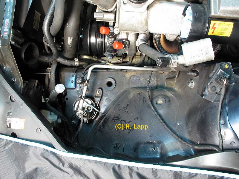 Übersicht: GF46.30-P-3300A Das ABC-System beim Typ 230.474 SL55AMG arbeitet mit einem hydraulischen Druck von über 190 bar, erzeugt von der Radialkolbenpumpe in einer Tandem-Pumpe (Hydropumpe) A0034665001 - 1296,90 Euro ohne MwSt. links seitlich vorn am Motor. Sie besteht aus einer Radialkolbenpumpe und einer Flügelzellenpumpe. Die Pumpenteile/Kreisläufe sind nur durch einen Dichtring getrennt. Früher wurde gelbes Hydrauliköl für die Lenkhelfpumpe verwendet. Laut WIS sind beide Pumpenteile nun mit dem grünen Pentosin CHF11S gefüllt. Die Pumpe wird über den zweiten Keilrippenriemen angetrieben. |