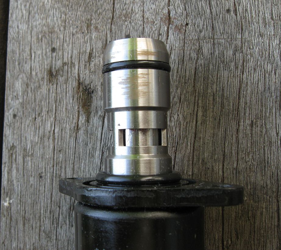 | Der Ventilschieber enthält eine seitliche kleine Bohrung, die bei geschlossenem Saugdrosselventil (stromlos) eine kleine Menge ABC-Öl durchläßt. | ![]() |