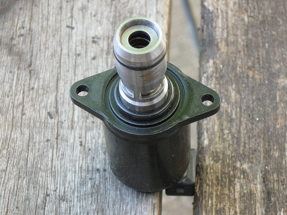 ABC-Ölmengenregelung: Das Saugdrosselventil ABC (y86/1) ist ein Proportionalventil und stromlos geschlossen. Das Steuergerät N51/2 regelt über dieses Ventil die Ansaugmenge der Radialkolbenpumpe und damit den Druck (gemessen vom Drucksensor B4/5). Die Grundkennlinie der Pumpe wird über die Bohrungen erzeugt. Das Saugdrosselventil ist mit zwei Schrauben an der Pumpe befestigt. Diagnose: Mit der Diagnose kann die Funktion des Saugdrosselventils Y86/1 getestet werden, damit hat man auch den ABC-Pumpendruck, siehe hier. Der an den beiden Anschlüssen des Saugdrosselventils messbare Innenwiderstand beträgt etwa 4,4 Ohm. Bei abgezogenem Stecker liefert die Diagnose die Meldung "gestörte Verbindung". Fehlerfall: Zeigt die Diagnose 0 bar ABC-Druck und beim Saugdrosselventil 0 mA Stromfluß auch beim Drücken der F3-Taste, dann hilft es oft, den ABC-Ölbehälter mit etwa 1/2 bar Luftdruck zu versorgen (Hinweis von Harald (halg60, sl-r230-forum), um einen Druckaufbau (ca. 190 bar) zu erreichen, siehe auch Abschnitt 4, Inbetriebnahme der Tandempumpe (AR-32.50-P-0021-01N). Andi55 wies am 24.03.2019 im SL-R230-Forum auf ein normales Autoreifenventil aus Gummi hin. Der Ventilfuß passt genau in die Messstaböffnung. |