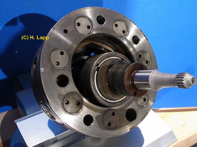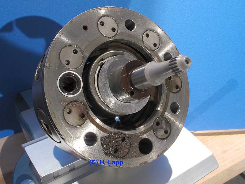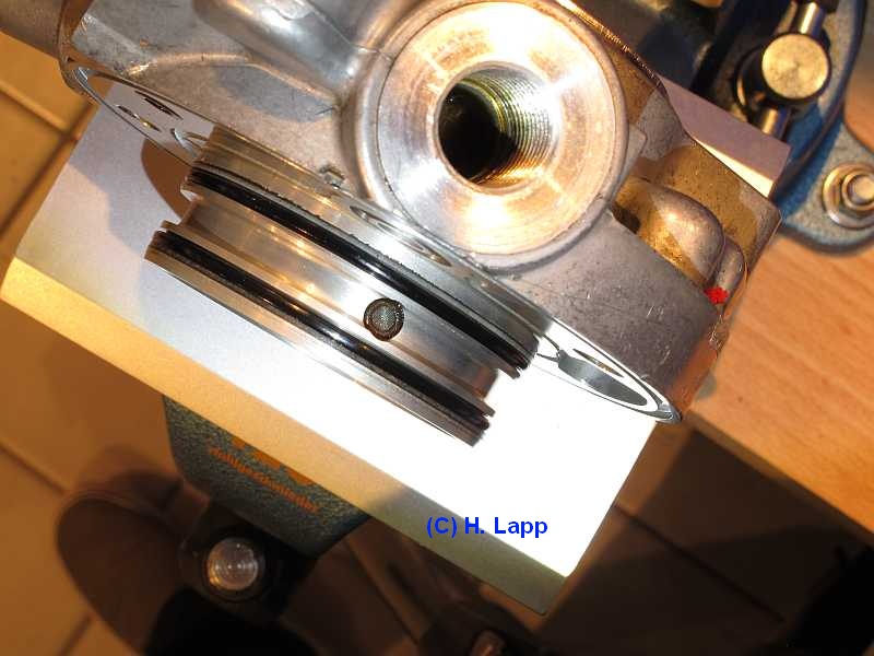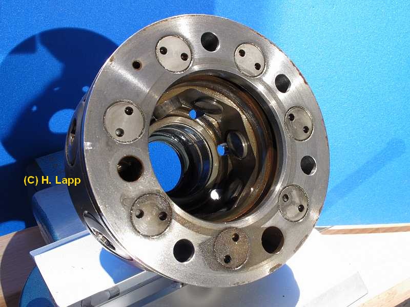 Die sieben Druckkolben werden durch Federkraft zurück geschoben (Ansaugen). Die Federn brechen nach längerer Betriebszeit. Federmaße: Länge 31 mm, Außendurchmesser 9,2 mm, Drahtstärke 1,25 mm. |
