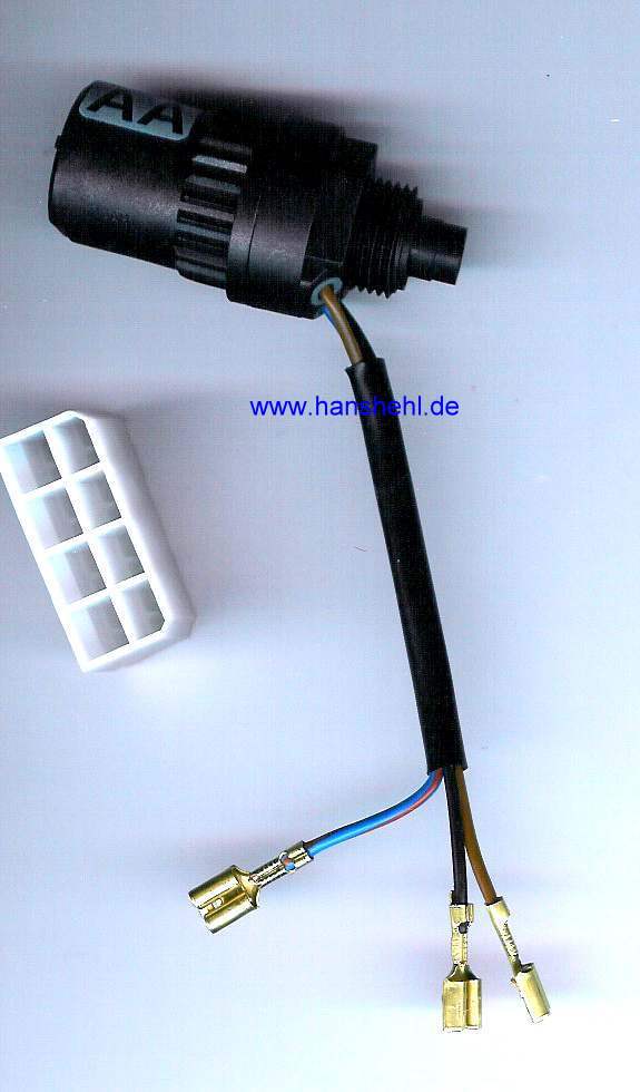 Der Tachogeber 2152-30300000Z bzw. der Adaptersatz VDO Typ X39-397-106-191 sind anscheinend bei VDO nicht mehr erhältlich. Den Adaptersatz braucht man aber beim Mercedes-G nicht. Ersatz-Tachogeber: Eventuell passt der VDO-Geber 340-214-013-001Z, er gibt 4 Impulse pro Tachowellenumdrehung (Hinweis von W. Travnicek, Danke!) Der Stecker am Impulsgeber Nr. 2152-30300000Z siehe Hallgeber wird abgeschnitten und an den drei Leitungen normale Flachstecker für AMP-Stecker aufgepresst. Das schwarze Kabel kommt an eine abgesicherte 12V-Plusleitung von der Zündung (Klemme 15). Das braune Kabel ist die Masseleitung und das blau/rote Kabel (Impulse) kommt gleich in den AMP-Stecker, Position Nr. 8. |