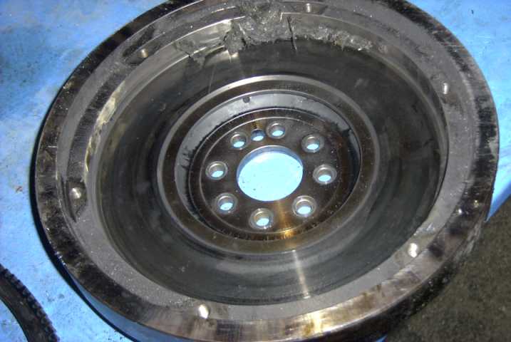 Zahnkranz gelöst | verbrannte Kupplung | Kardanwelle nach Umbau (Oelfuß v. vier) |