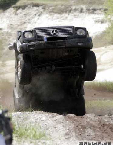 Bilder von der ehemaligen Webseite sabbia.de/Portal/G-Tech/DC_-_G/body_dc_-_g.html (G-Tech, DC-G): Resultat: verbogene Vorderachse bei einem neuen G400! |