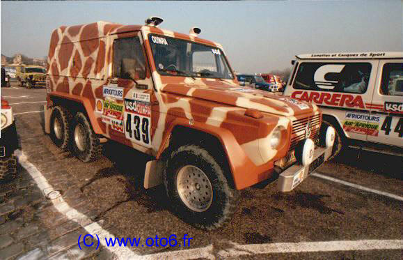 Die nicht mehr existierende französische Firma De Leotard von Christian de Léotard (18.05.1948 - 6.09.2014) brachte bei der Ralley Paris-Dakar 1985 einen Dreiachser-G an den Start. Auf der Webseite 6-wheel-drive findet man viele weitere G-Modelle mit drei Achsen und auch Youtube-Videos. |