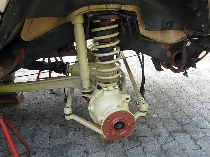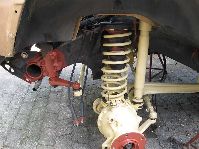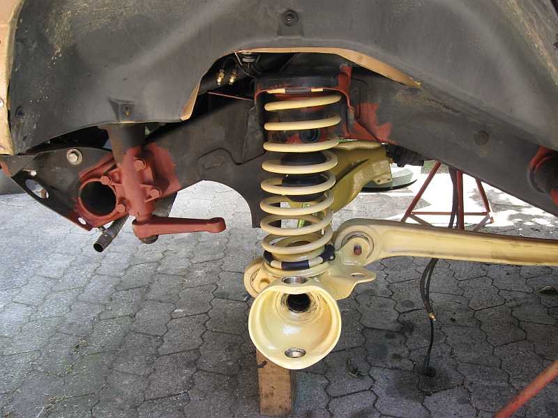 | Unter den Federtellern war die Farbe auf den Rost aufgetragen. Also auch hier nacharbeiten. Ich hätte die Federteller vor dem Sandstrahlen abtrennen sollen. Nun habe ich eine Sandstrahlfirma in der Nähe gefunden: www.sandstrahlen-haimerl.de , die sich auch auf Oldtimer spezialisiert hat. | ![]() |