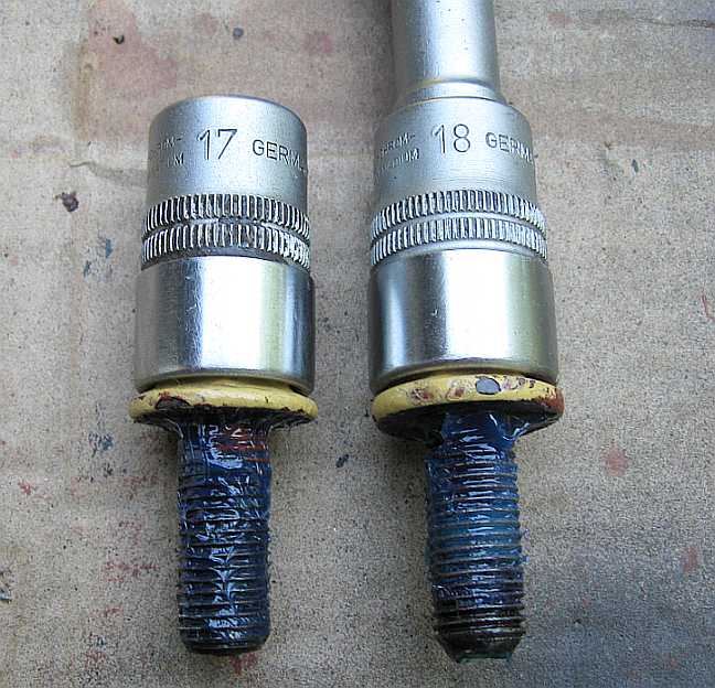 | Die restaurierten Radnaben werden nun eingebaut, wobei auch die Edelstahlhalbringe und neue Dichtringe (Polyamidringe) verwendet werden. | ![]() |