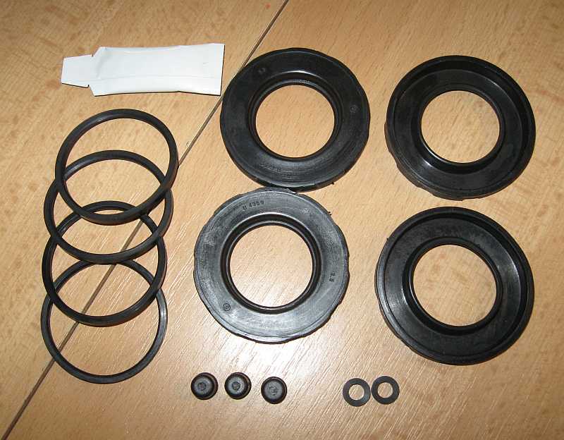 Da kann man den Reparatursatz (Perrot) auch im Internet kaufen, z.B. bei NB-Parts GmbH (91325 Adelsdorf). Auch die beiden kleinen Dichtungsringe der Bremssattelhälften und Bremskolbenpaste sind dabei: Made in Spain, autofrenSeguridad Industrial S.A. |