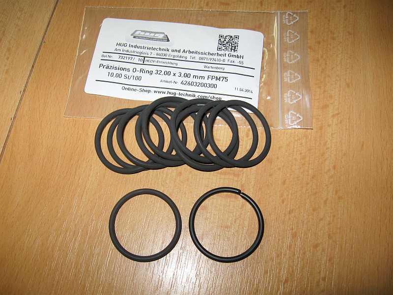 Der alte NBR-Dichtring 32x3mm der linken Gelenkwelle wurde durch einen FPM-Viton-Ring ersetzt. zur Restauration 2014 Teil 2 |