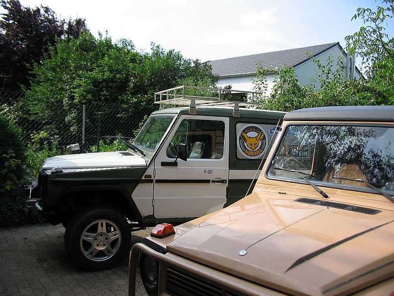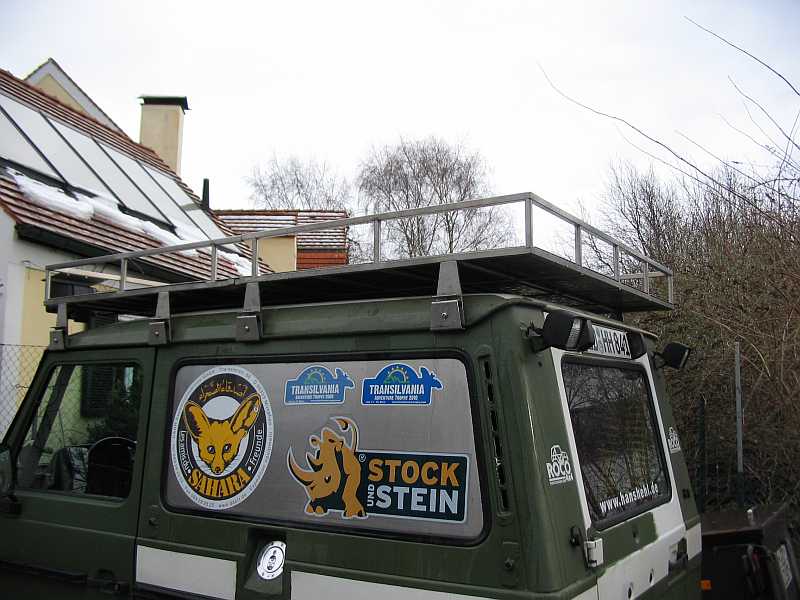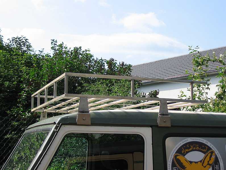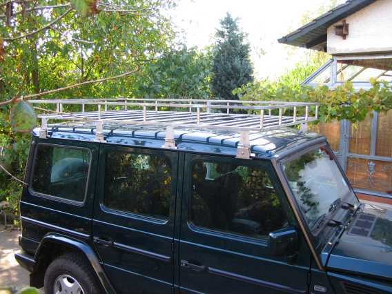 | Noch auf dem G270CDI habe ich den Dachträger in der Mitte durchgesägt. Eine Hälfte passte auch auf das Dach vom Geländewagen mit kurzem Radstand. | ![]() |