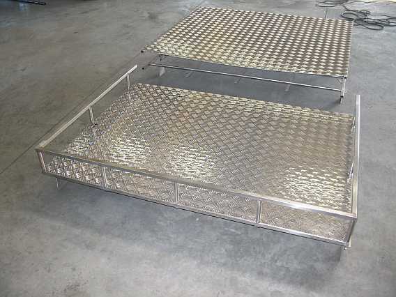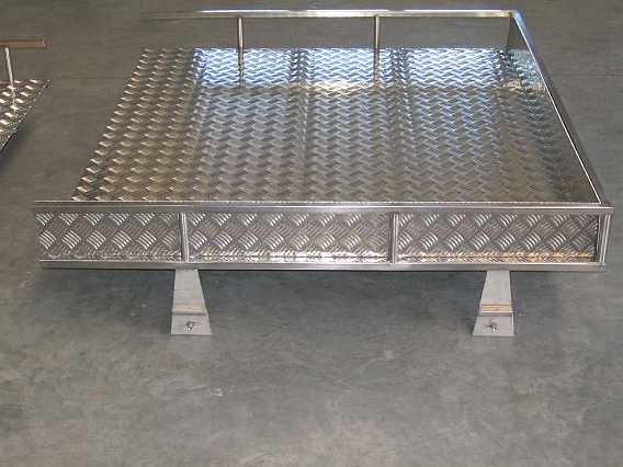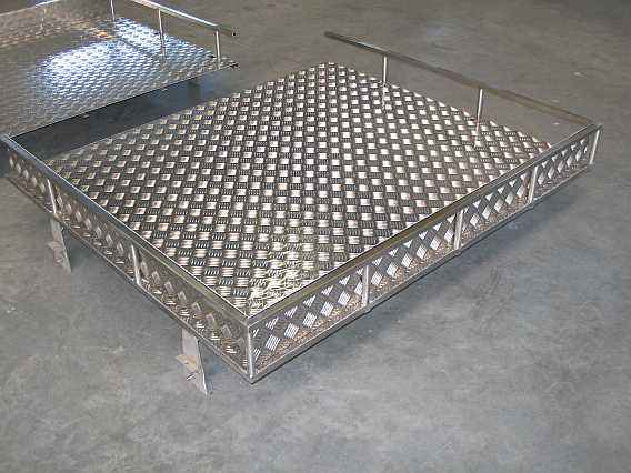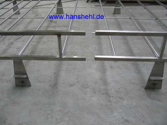 | Die zwei Alu-Riffelblech-Bodenplatten werden mit V2A-Bügel am Träger befestigt. |