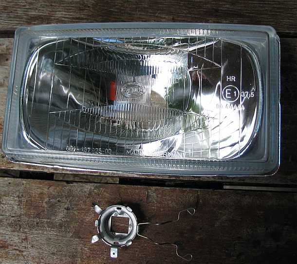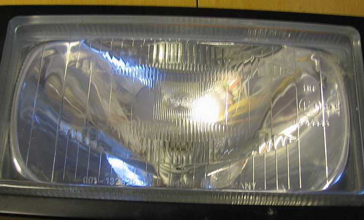 | Die auf den Gläsern der Fernlicht-Scheinwerfer angegebene Gesamtreferenzzahl (neben dem E1-Zeichen) darf laut ECE Regulation 48 nicht größer als 100 sein. Die Serienscheinwerfer des 280GE haben eine Referenzzahl von je 20 = 40 gesamt. Da die Hella-Scheinwerfer eine Referenzzahl von 37,5 haben (also 75), somit liegt eine Gesamtzahl von 115 vor, sind sie als Fernlicht-Zusatzscheinwerfer nicht erlaubt. Daher werden sie als Arbeitsscheinwerfer zuschaltbar geschaltet. |