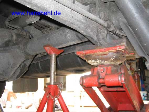 | Obwohl ich seit 1980 den 240GD auch am Differenzial mit dem Rangierheber angehoben hatte, schreibt das Werkstattinformationssystem WIS eigentlich vor, dass nur an den vier Längslenker/Schubstrebenenden an der Achse mit einem Werkstatt-Wagenheber angehoben werden darf oder direkt an der Achse (AR00.60-P-1000-01G). |