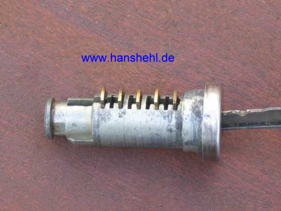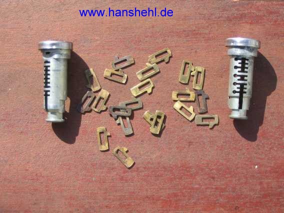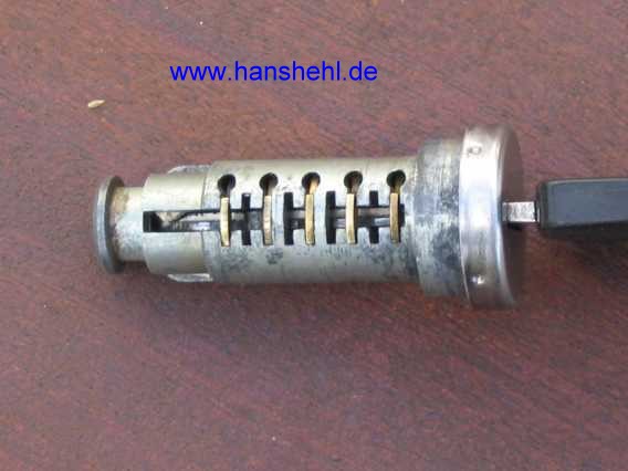 | Mit einer spitzen Pinzette/Nadel werden die Schließplättchen und die Federn entnommen. Dann mit Fettlöser den Zylinder sauber auswaschen. | ![]() |