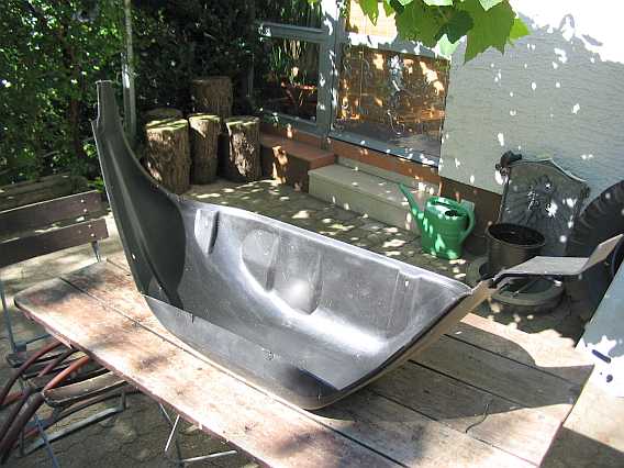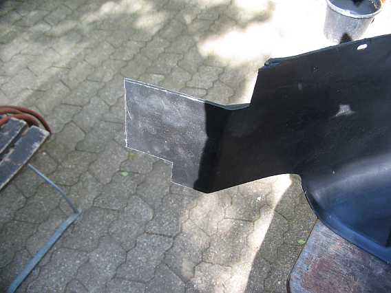 1994 baute ich die ersten 5 Winkel für die Innenkotflügel noch aus Eisenblech. Nach 12 Jahren waren sie dann ziemlich verrostet, nun sind sie aus 1 mm starkem Edelstahlblech gefertigt. |