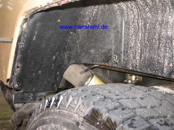 "Zitat: Ich habe meinen 460er mit Verbreiterungen gerade erst mit Innenkotflügeln nachgerüstet. Die breiten Innenkotflügel haben den Vorteil, daß sie bis zum Außenrand der Verbreiterungen reichen und damit sicher verhindern, dass Wasser zwischen Karosserie und Keder der Verbreiterung durchläuft und dort Rost ensteht. Auf jeden Fall die Verbreiterungen mal runternehmen und mit Edelstahlschrauben neu festschrauben. Zitatende: "Madmac", viermalvier.de, 24.11.2003/ 26.01.2004)" Die breiten Innenkotflügel: A4638840122 (Vo.Re.) A4638840022 (Vo.Li.) A4638840422 (Hi.Li.) A4638840522 (Hi.Re.) Nachtrag: Besser ist es, die Verbreiterungen mit neuen V2A-Winkeln und V2A-Beilagscheiben zu montieren und die Keder wegzulassen. |
