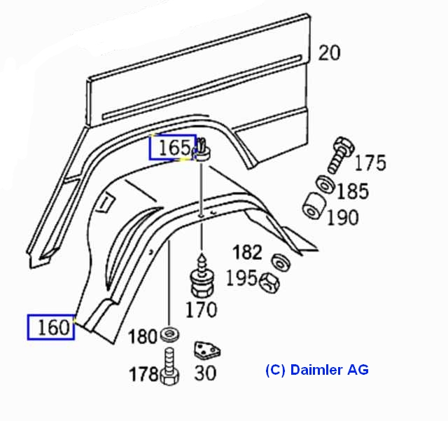 1.2 Innenkotflügel hinten beim 460 / 280GE: (mit Kotflügelverbreiterung):