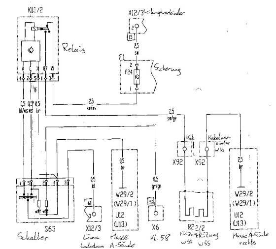Je nachdem, ob die alte Scheibe noch gebraucht wird oder nicht, sollte man diese mit der notwendigen Sorgfalt (oder mit den Füssen im Fahrzeug liegend) ausbauen. Der Gummi ist leicht vom Rahmen abzuziehen. Es empfiehlt sich den Rahmen zu entrosten und gegen weitere Korrosion zu behandeln. Einschlägige Mittel gibt es genug, viele Tipps dazu sind hier. Eine neue Scheibendichtung ist empfehlenswert. 2.Bestellung der Teile: ![]() Benötigt werden folgende Teile lt. Ersatzteilkatalog DC: veraltete Preise 2006: Bild-Nr.: 029 - A4635403810 - 142,13 Euro inkl. MwSt. - Leitungssatz Bild-Nr.: 035 - A4636700101 - 649,60 Euro inkl. MwSt. - heizb. Windschutzscheibe, klar VG - oder Bild-Nr.: 035 - A4636700501 - 649,60 Euro inkl. MwSt. - WSS, heizb., Wärmed. Bild-Nr.: 005 - A1298207410 - 14,91 Euro inkl. MwSt. - Schalter Bild-Nr.: 011 - A1078200010 - 55,47 Euro inkl. MwSt. - Relais Bild-Nr.: 020 - A0005400169 - 2,22 Euro inkl. MwSt. - Kabelverbinder Bild-Nr.: 008 - N072581000307 - 0,49 Euro inkl. MwSt. - Sicherungselement dazu Kleinteile, so das wäre geschafft. 3. Der Einbau der Scheibe: