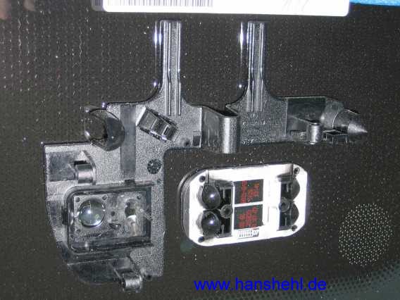 | Die Bodenplatte (A4638200411, wird nicht mehr geliefert, Hella, 9XB736 930-00) des Lichtsensors ist auf der Rückseite