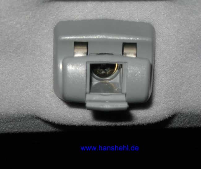 Die Sonnenblenden sind mit zwei Blechschrauben angeschraubt, ebenso die Halter (kleinen Deckel nach unten kippen) und die seitlichen Handgriffe. |